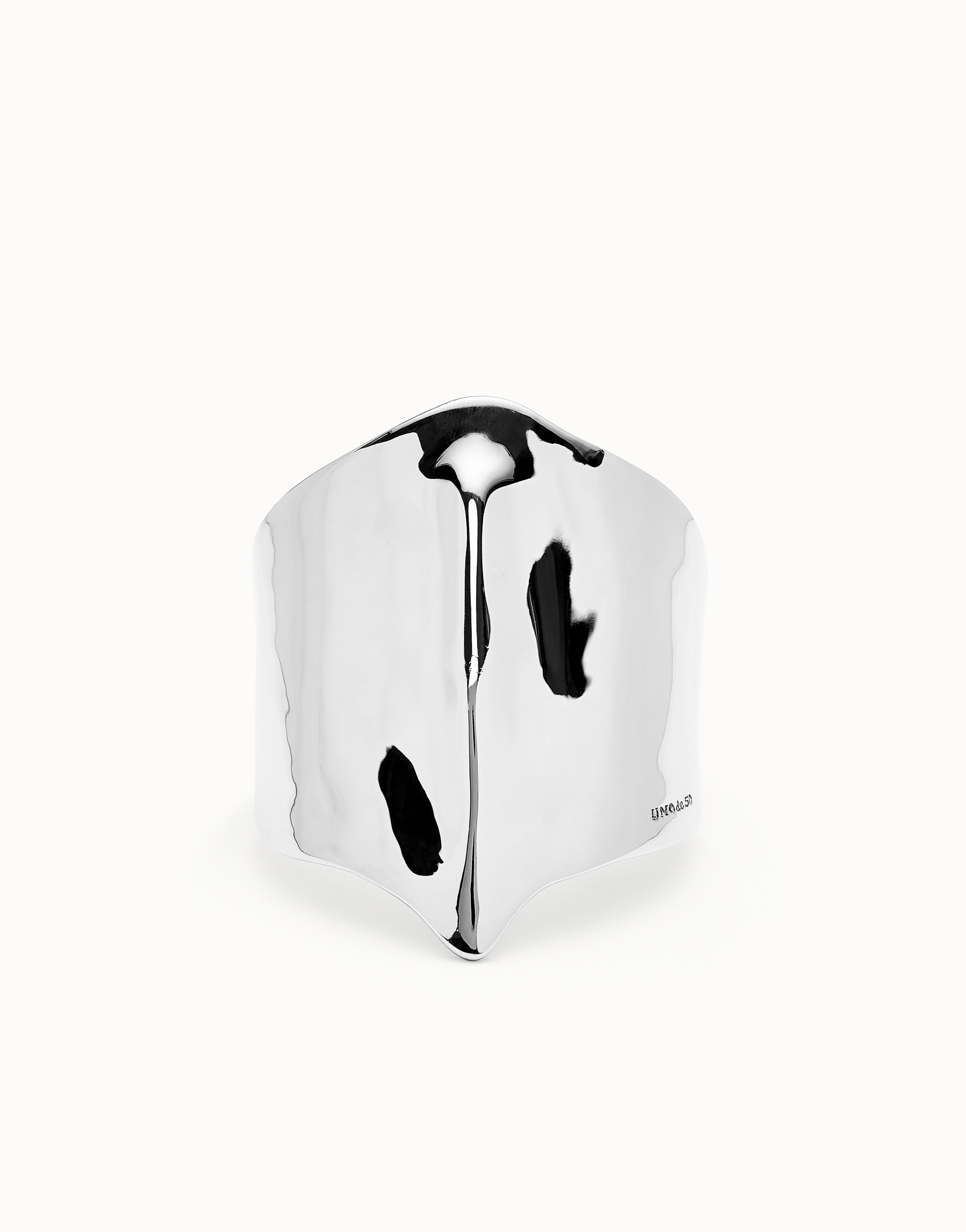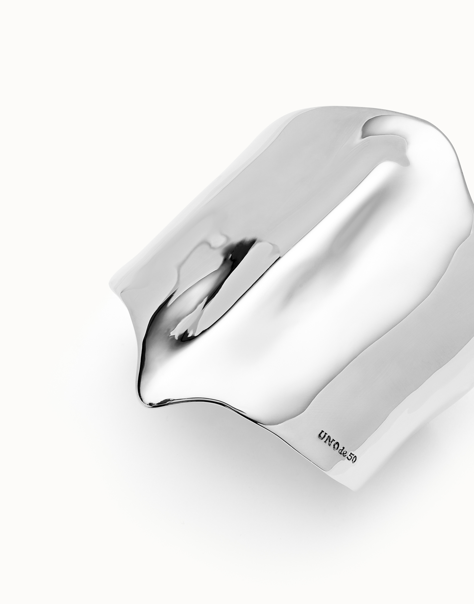 Rigid wide sterling silver-plated bracelet with manta ray structure. Discover the elegance of Ser Majestuosa, a collection that evokes the dance of the manta ray across the sea and a tribute to Puerto Rico island and its people.