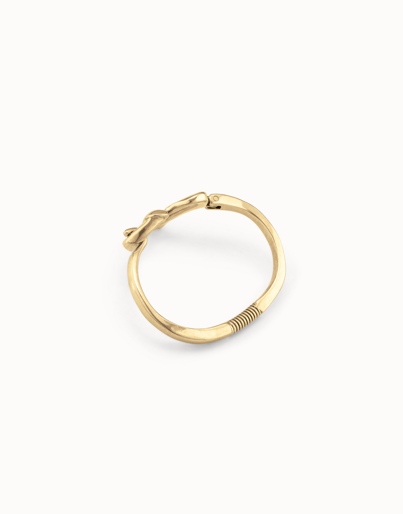 Rigid 18K gold-plated bracelet represented by a large and iconic heart nailed in the center. This design has an elegant spring that allows to be perfectly fitted. A timeless design, handcrafted in Spain.
