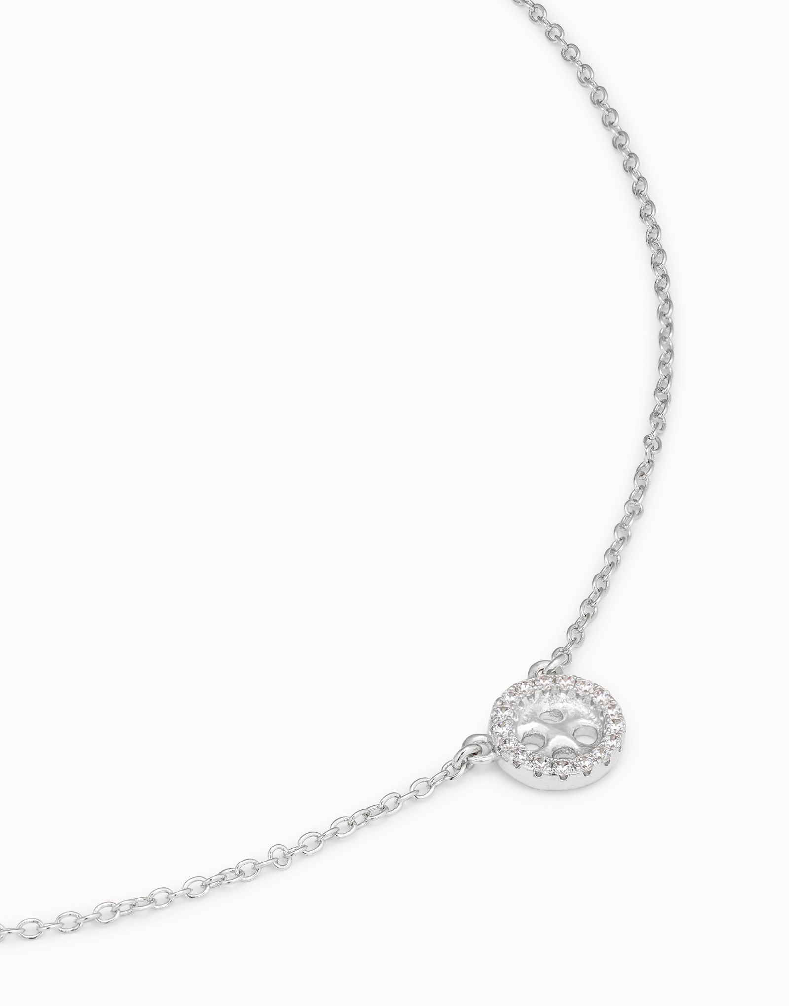The Stay Close necklace is a chain featuring a unique white topaz button-shaped pendant. This design was handcrafted in Spain from a silver-plated metal alloy using artisan techniques. It has a lobster clasp, allowing you to adjust the piece of jewelry to the desired length (between 10.5 and 44 cm). Treat yourself with this unique, one-of-a-kind piece and wear it with the rest of the collection.