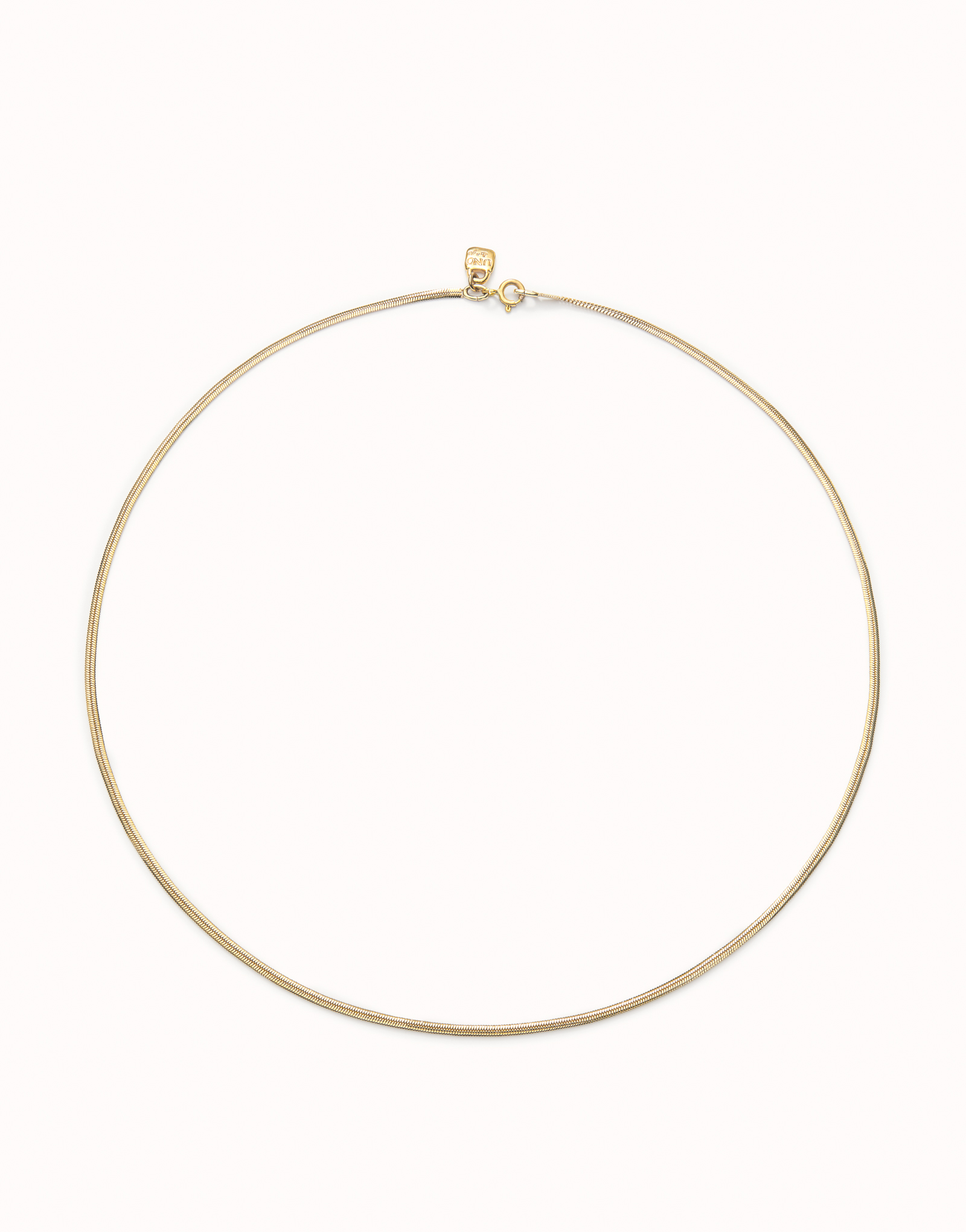 18K gold-plated short flat chain. Made in Spain with a 100% handmade process. If you are not worried about what people may think of you, this collection fits you perfectly. Pieces where the dragonfly becomes the central element of the season, true symbols of nonconformity combined with leather, colored crystals and links