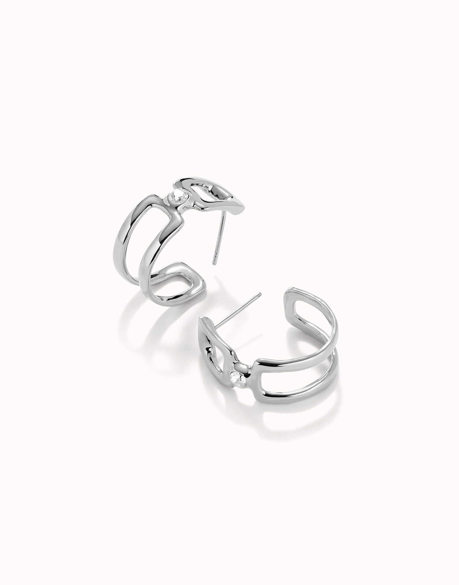 Double sterling silver-plated hoop earrings with white central topaz. Made in Spain with a 100% handmade process.A collection in which topaz, clean lines and geometric shapes become protagonists, without filters.