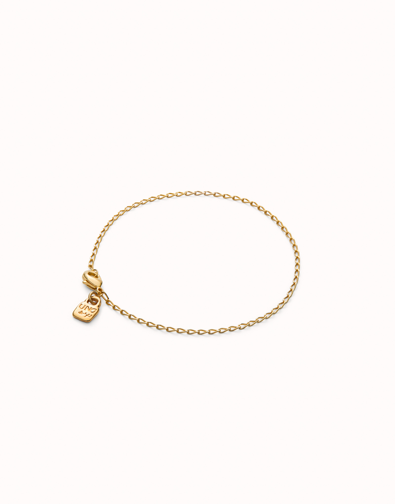 18K gold-plated bracelet with oval links. Made in Spain with a 100% handmade process. If you are not worried about what people may think of you, this collection fits you perfectly. Pieces where the dragonfly becomes the central element of the season, true symbols of nonconformity combined with leather, colored crystals and links