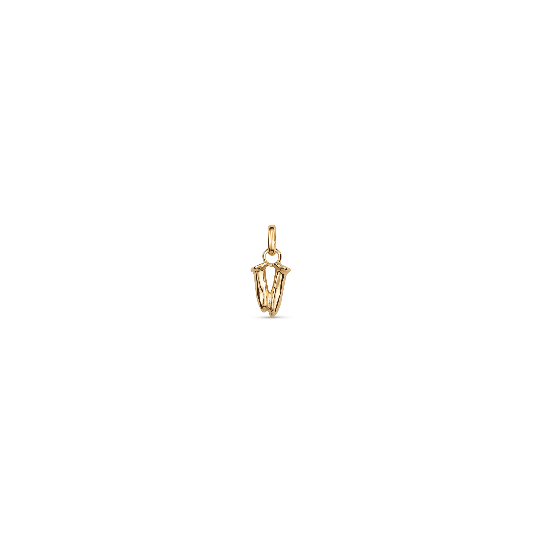 18K gold-plated charm with small letter V. Made in Spain with a 100% hand made process. If you are not worried about what people may think of you, this collection fits you perfectly. Pieces where the dragonfly becomes the central element of the season, true symbols