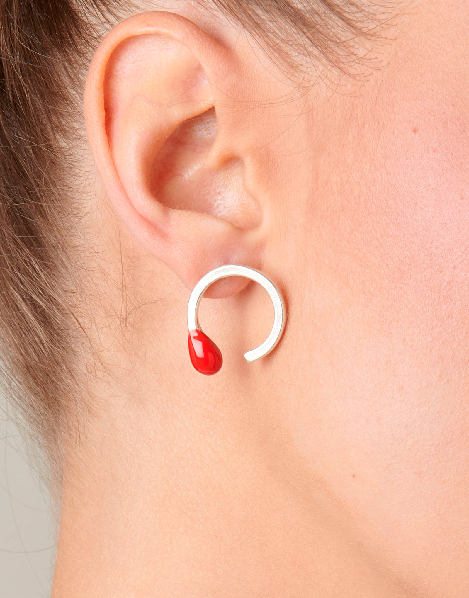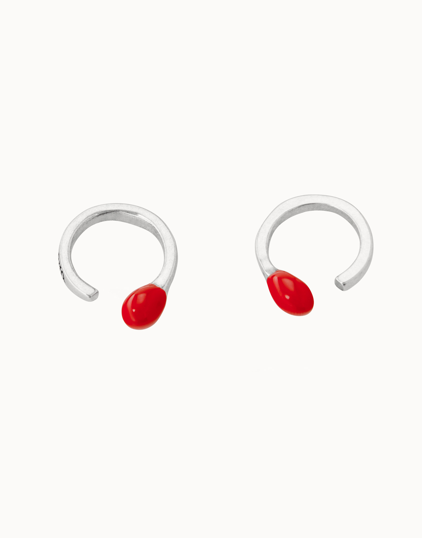 These round silver-plated metal earrings form an original tandem that you can combine with any of your looks. It's a Perfect Match that you won't go unnoticed with. Each piece is topped with a red enameled ball, which stands out over its silver color. Wear a piece 100% handcraft made in Spain by UNOde50.